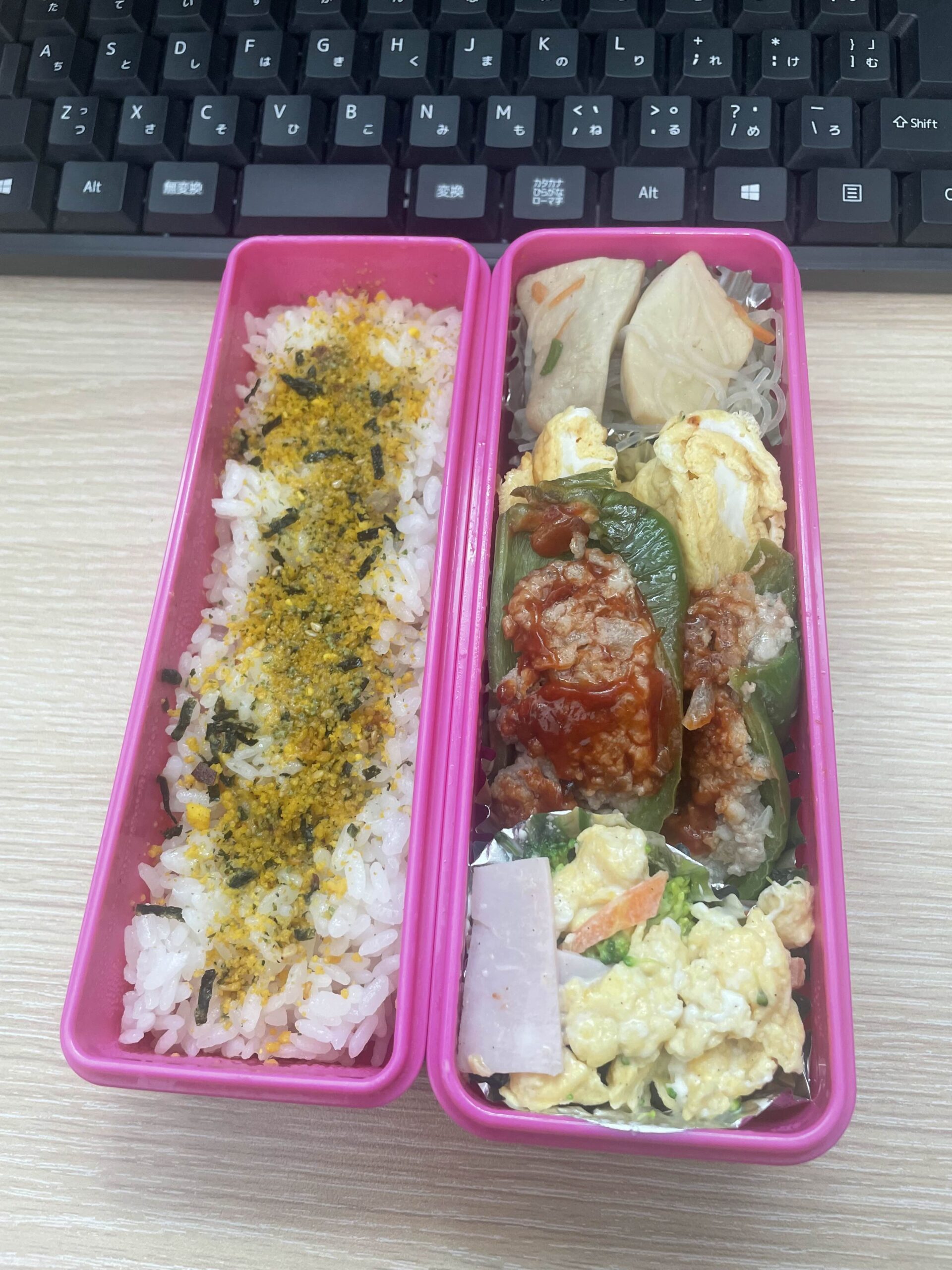 今日もお弁当のUPしたいと思います(^^) エリンギと春雨の炒め物(母親作) 卵焼き(安定のやつ!w うちは昔からしょっぱい卵焼き派) ピーマンの肉詰め(最近の定番〜♬.*゚) ブロッコリーのサラダ 今回は作り置きがなかったのでちょっと時間かかりましたが、料理は嫌いじゃないので またゆる〜く作りたいと思います〜𓂃 𓈒𓏸◌‬